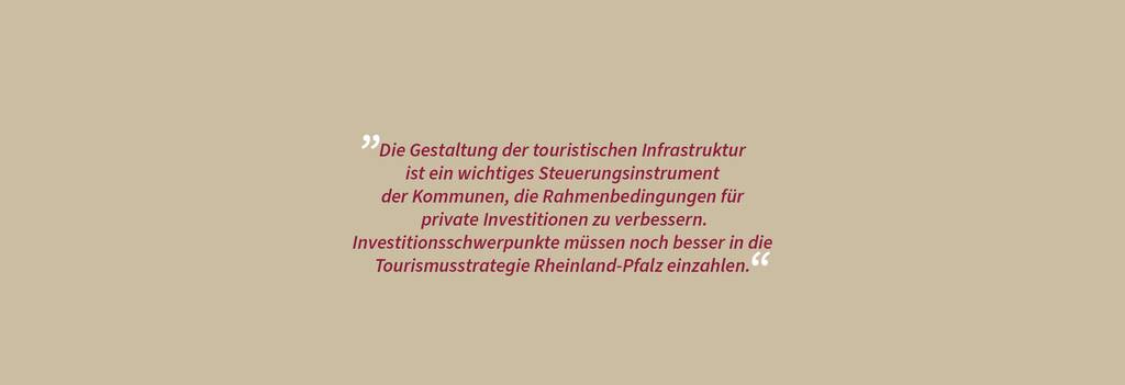Im Rahmen des Strategieprojektes wurden Impulsinvestitionen definiert, die auf die Ziele der Tourismusstrategie Rheinland-Pfalz 2025 einzahlen. Die Kriterien hierfür finden Sie auf der folgenden Seite.