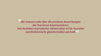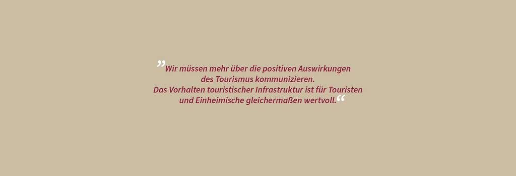 … betonen stark die gesamte „Wertigkeit“ des Tourismus im quantitativen wie auch qualitativen Sinne, also die ökonomische Bedeutung ebenso wie den Beitrag zur Lebensqualität der Bürger vor Ort.